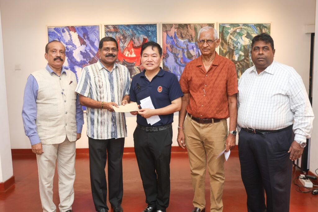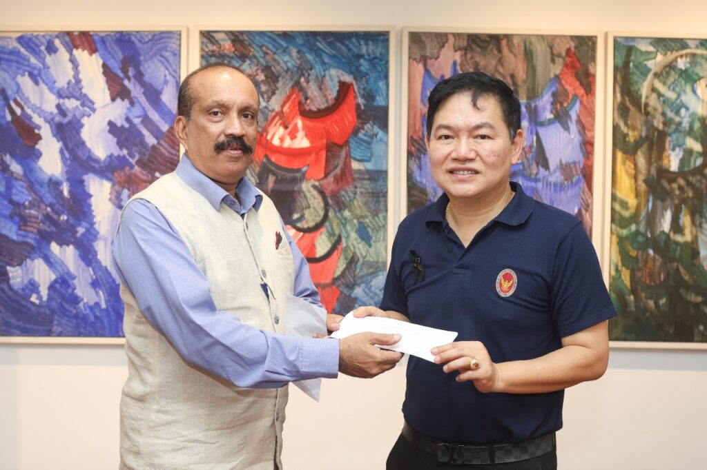 Srilanka – Thailand Society President Deshabandu K.Jayakumar handed over a cash donation for the affected families of the cyclone Ditwah along with exco-members Mr Ranjith Perera, Mr Chandana Athukorala and Srilanka – India society president Mr S.Renganathan for the Royal Thai Embassy Relief fund to His Excellency Paitoon Mahapannaporn at Siam Nivasa on 7th December 2025. Secretary to His Excellency Mr Amare Wanigaratna was also present.